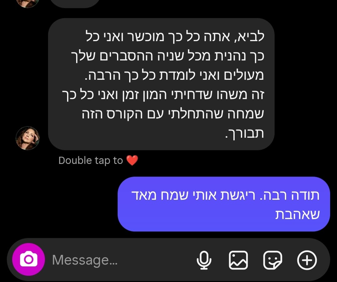 הקורס הדיגיטלי דווקא נותן לך יתרונות שמורה פרטי לא יכול לתת: אתה יכול לחזור על כל שיעור כמה פעמות שתרצה, ללמוד בקצב שלך, ולתרגל בלי לחץ. בנוסף, יש קבוצת פייסבוק סגורה שבה אני עונה אישית על שאלות.